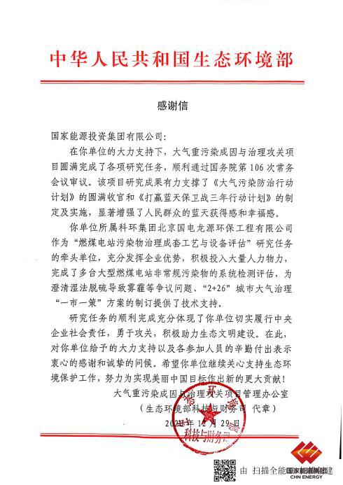 2020年12月29日,世界杯官方网页版承担国家“总理基金”项目子课题,获生态环境部致函感谢